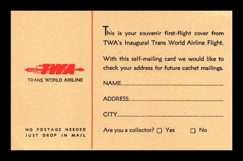 Title (ebay affiliate link): DR JIM STAMPS US TWA AIRLINE SOUVENIR BUSINESS REPLY POSTAL CARD