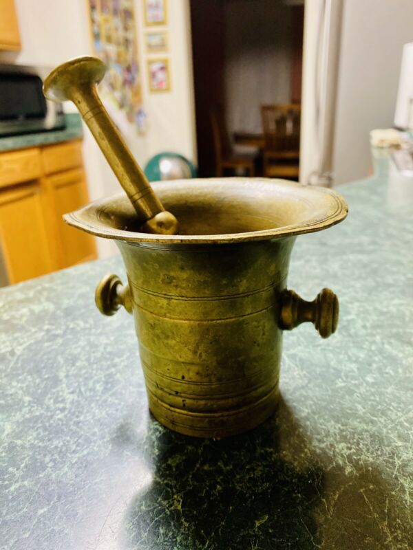 Title (ebay affiliate link): Vintage Heavy Solid Brass MORTAR AND PESTLE, PHARMACY, APOTHECARY