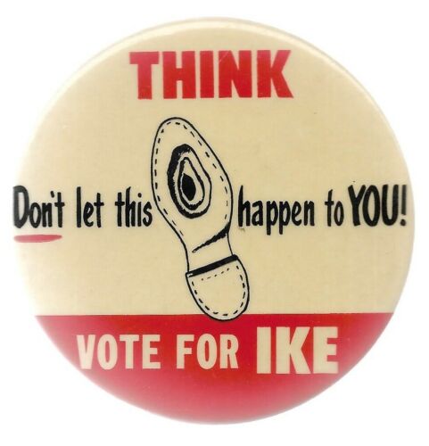 EISENHOWER ANTI STEVENSON THINK DON''T LET THIS HAPPEN TO YOU POLITICAL PIN