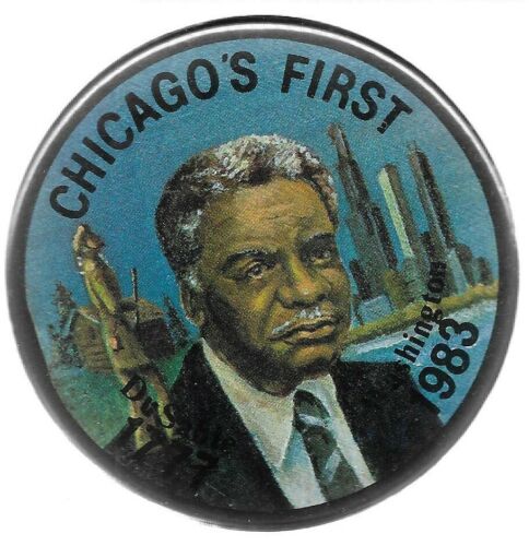 Title (ebay affiliate link): MAYOR WASHINGTON CHICAGO''S FIRST 1983 POLITICAL PIN BUTTON