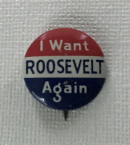 Title (ebay affiliate link): 1940 PRESIDENT ROOSEVELT FDR LITHO POLITICAL CAMPAIGN PIN BUTTON Geraghty Co VF!