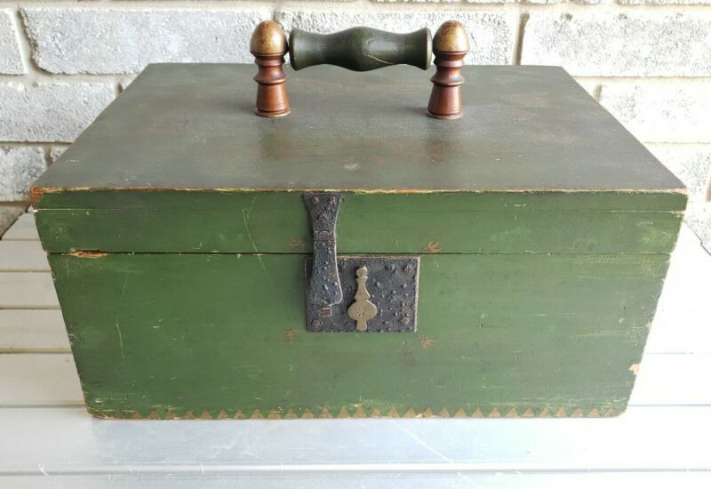 Title (ebay affiliate link): Antique Primitive Document Lock Box Original Green Paint Floral & Border Designs