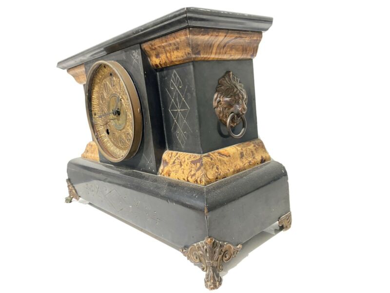 ANTIQUE 1880 SETH THOMAS ADAMANTINE MANTLE WORKS LIONS EAST LAKE