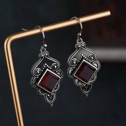 Title (ebay affiliate link): Retro Antique Silver Ruby Dangle Earrings Hook Jewelry Women Party Wedding Gift