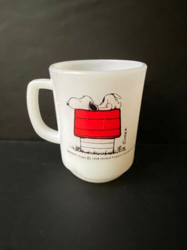 Title (ebay affiliate link): Vtg Snoopy Mug Fire King Milk Glass Allergic To Mornings Coffee Cup