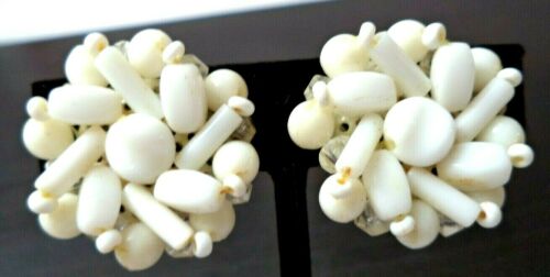 STUNNING VINTAGE ESTATE SIGNED W GERMANY MILK GLASS FLOWER 1" CLIP EARRINGS G560