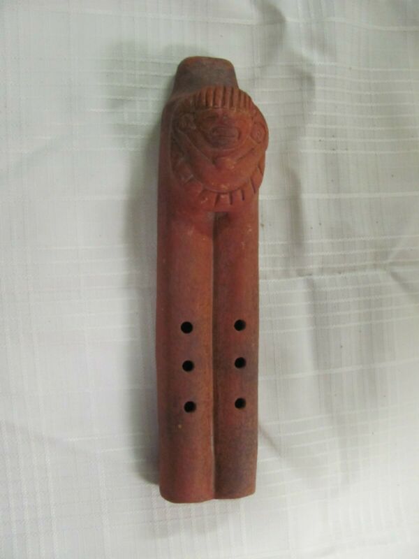 Vintage Aztec Inca Mayan Mexican Folk Art Pottery Flute