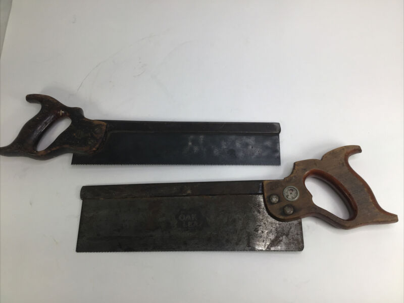 Title (ebay affiliate link): Lot 2 Vintage Antique Hand Back Dovetail Tenon Saw Oak Leaf