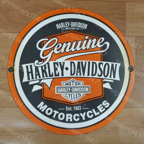 Title (ebay affiliate link): GENUINE HARLEY DAVIDSON PORCELAIN ENAMEL SIGN 12 INCHES ROUND