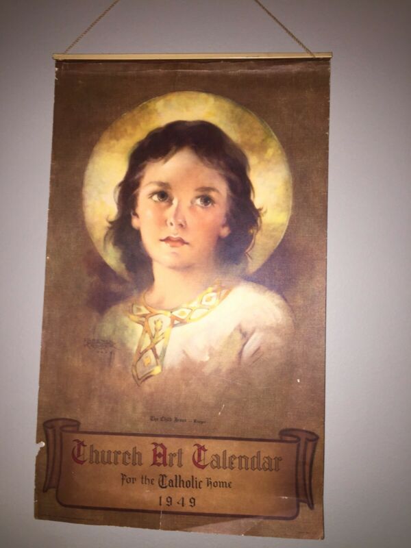 Title (ebay affiliate link): 1949 Vintage Advertising Church Art Calendar for the Catholic Home Child JESUS