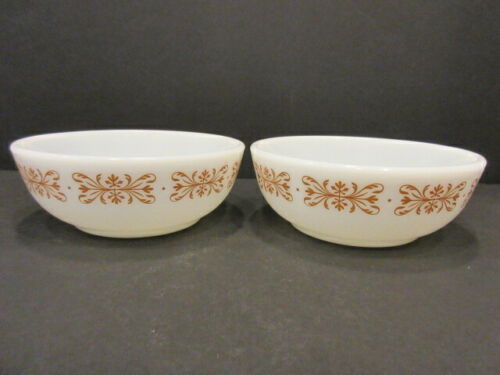 Title (ebay affiliate link): 2 Vintage Pyrex Tableware #708 Copper Filigree Milk Glass Soup / Cereal Bowls