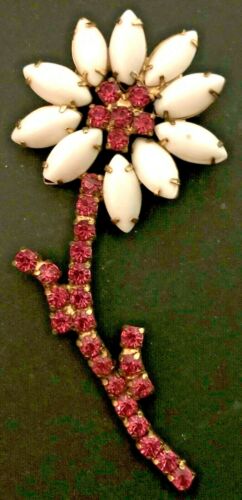 Title (ebay affiliate link): VINTAGE - RHINESTONE & MILK GLASS DAISY FLOWER BROOCH - 3 3/4" LONG!!