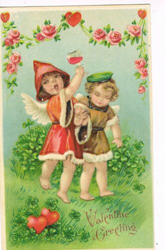 Title (ebay affiliate link): ANTIQUE EMBOSSED VALENTINE Postcard CUPIDS, FUR-TRIMMED COATS, ROSES, HEARTS