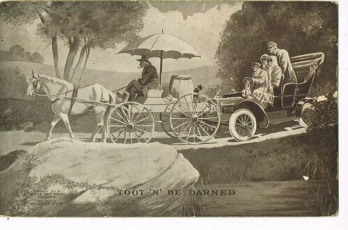ANTIQUE Postcard "TOOT ''N BE DARNED"