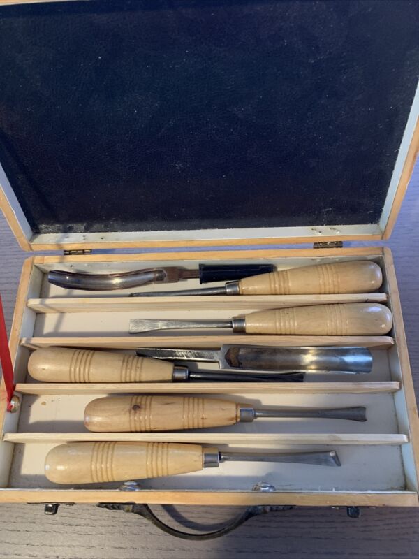Title (ebay affiliate link): Professional Wood Carving Chisel Set 7 Piece Sharp W/Carrying Case