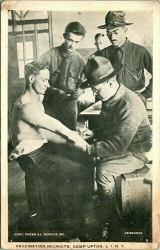 Title (ebay affiliate link): Antique WWI Postcard CAMP UPTON L.I. New York "VACCINATING RECRUITS"