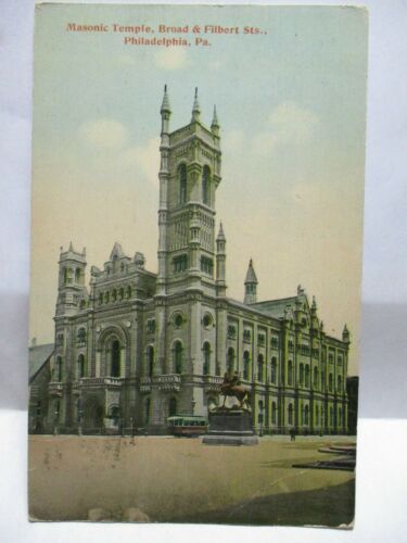 Title (ebay affiliate link): 1910 POSTCARD " MASONIC TEMPLE, BROAD & FILBERT STS. PHILADELPHIA PA " TROLLEY