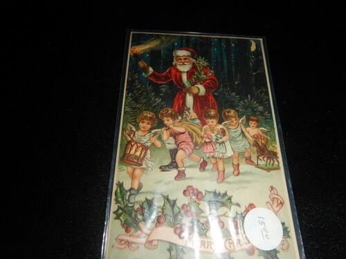 Old Victorian Christmas Post Card Santa Claus cherubs Germany embossed