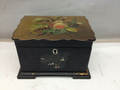 Antique French Papier Mache & Lacquer Hand-Painted Tea Caddy
