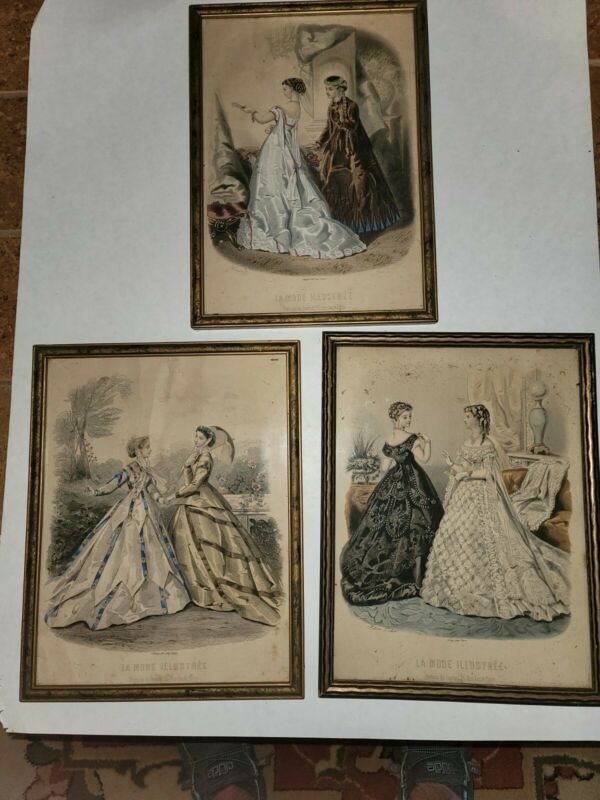 Title (ebay affiliate link): 3 Antique Wood PICTURE FRAME Victorian French La Mode Illustree Ladies Paris