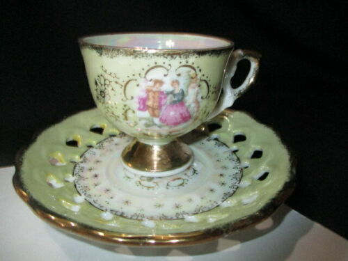b- CUP SAUCER DEMITASSE ESPRESSO LOVE STORY RETICULATED OPEN LACE CREAM LUSTRE