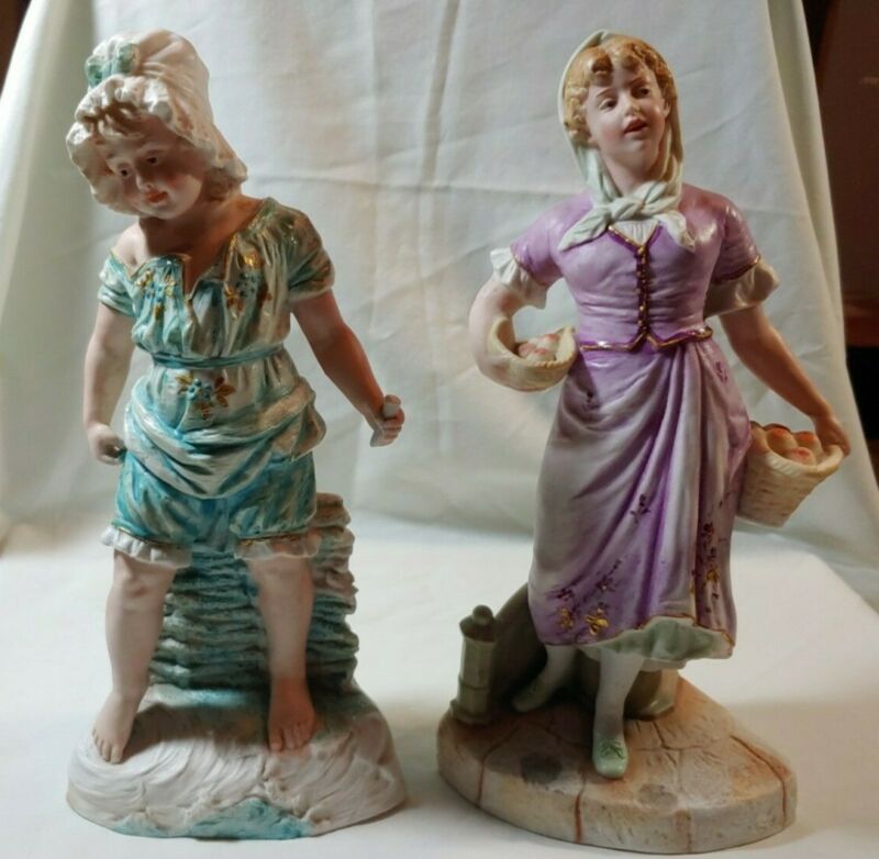 Title (ebay affiliate link): Two Vintage German Gebruder Heubech Bisque Female Figures 11" Tall Damage to one