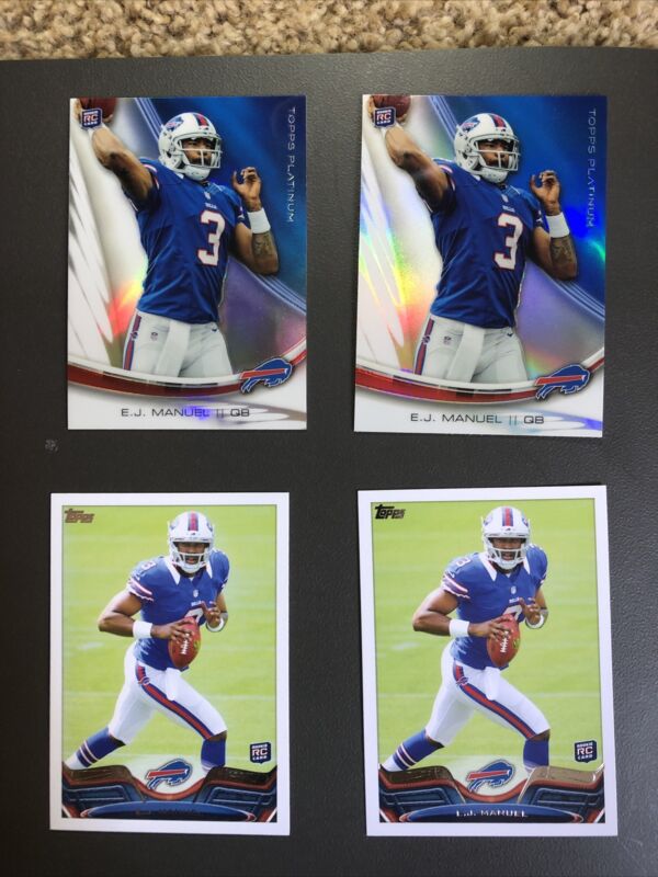 Title (ebay affiliate link): 2013 Topps Platinum Rookie RC Lot X 4 E.J. EJ Manuel Buffalo Bills #104 NM