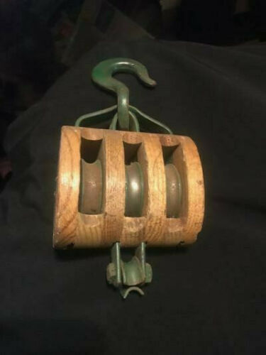 Title (ebay affiliate link): Vintage Wood Block and Tackle Stamped 3-PB UW Triple Barn Hook Home Decor Metal