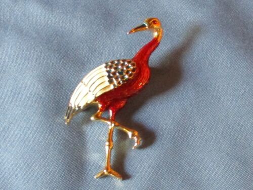 Title (ebay affiliate link): Vintage Gold-Tone Metal Rhinestone Eye & Enamel Stork Heron Bird Pin Brooch