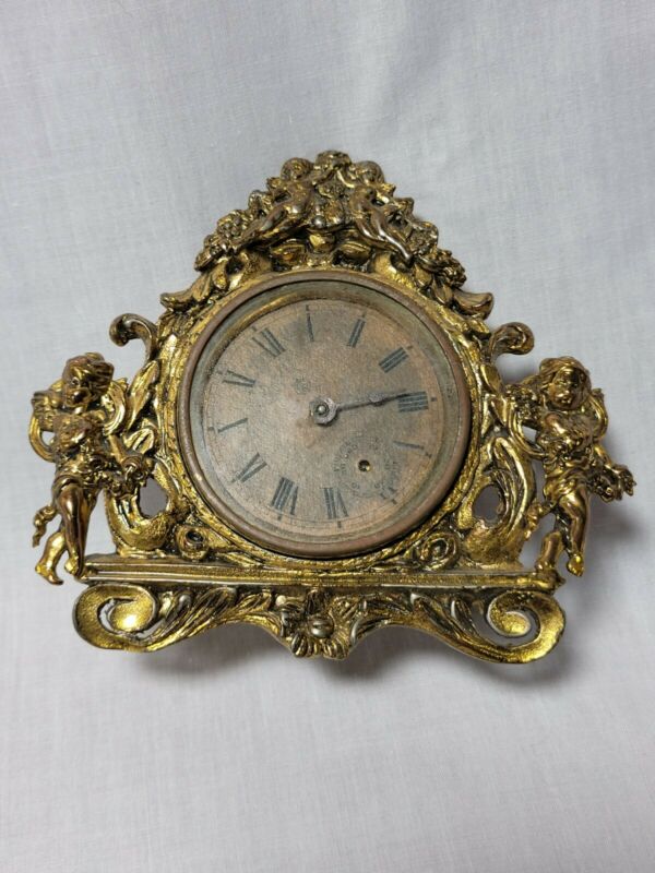 Title (ebay affiliate link): Antique Gold Table Clock with Winged Angels for Parts or Repair