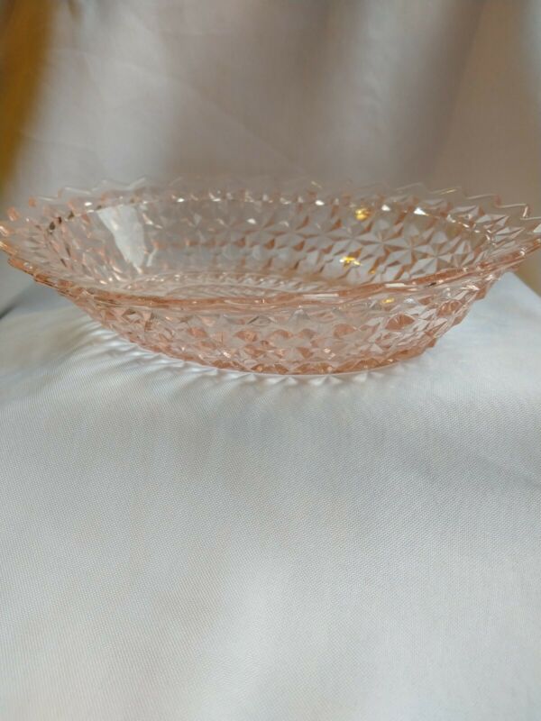 Pink Depression Glass Jeanette Holiday Buttons and Bows Oval Serving Bowl