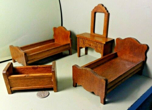 Title (ebay affiliate link): 5 Pc Bedroom Furniture for Dollhouse Wooden Twin Beds Cradle Vanity Strombecker