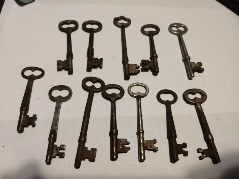Title (ebay affiliate link): LOT OF 12 ANTIQUE SKELETON, FURNITURE, BARREL, CABINET AND OLD LOCK KEYS