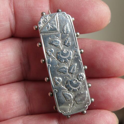 H/M ANTIQUE VICTORIAN JEWELLERY STERLING SILVER SWEETHEART ROSE BAR BROOCH PIN