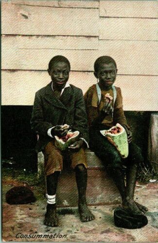Title (ebay affiliate link): Antique BLACK AMERICANA Postcard CONSUMMATION BOYS EATING WATERMELON UDB