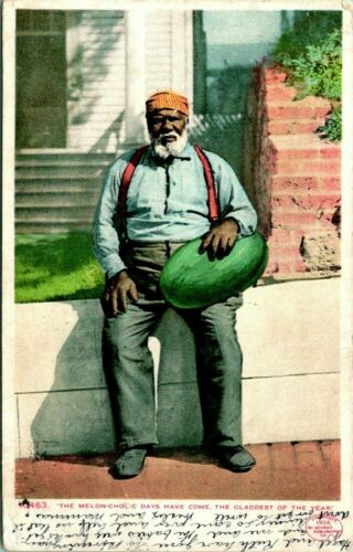 Antique BLACK AMERICANA Postcard "MELON CHOLIC DAYS" GLADDEST OF YEAR 1909