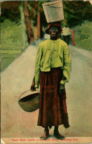 Antique BLACK AMERICANA Postcard "WATER CARRIER IN THE SUNNY SOUTH" 1908