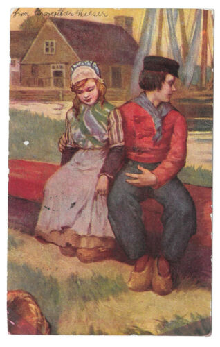 Title (ebay affiliate link): Romantic Dutch Couple Boy Girl Folk Costume Vintage 1907 Postcard