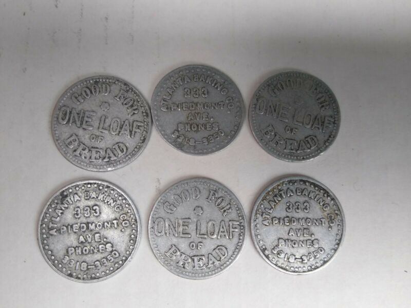 Vtg Bread TOKENS Lot of 6 Atlanta History Baker Collectible