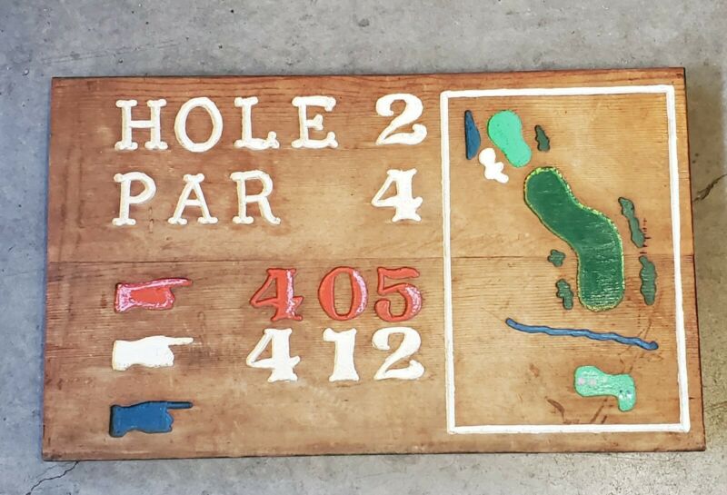 Vintage Carved Wooden Golf Course Sign Par 4 Hole 2