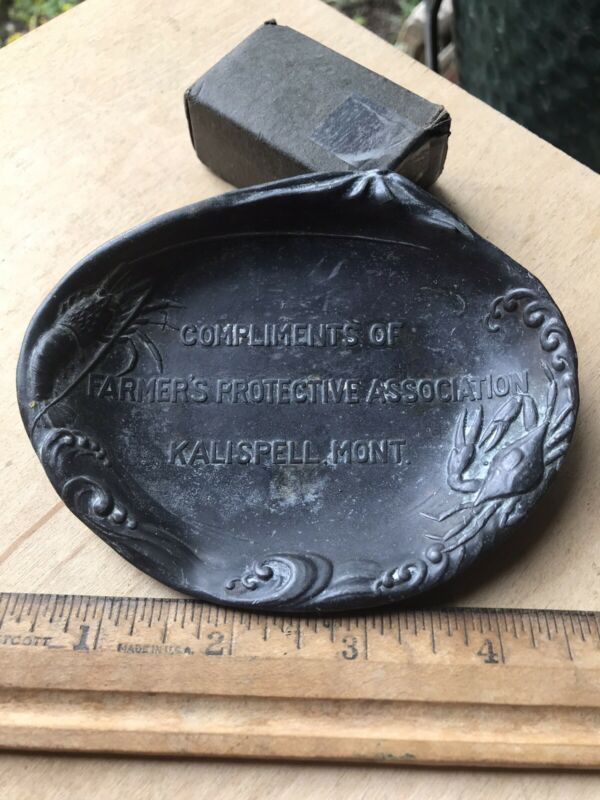 Title (ebay affiliate link): Vintage Metal Tray Farmers Protective Association Kalispell Montana Embossed