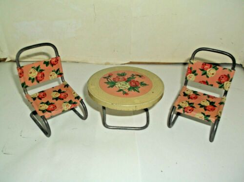 Vintage Tin Litho Patio Table & 2 Chairs Dollhouse Furniture made in Japan