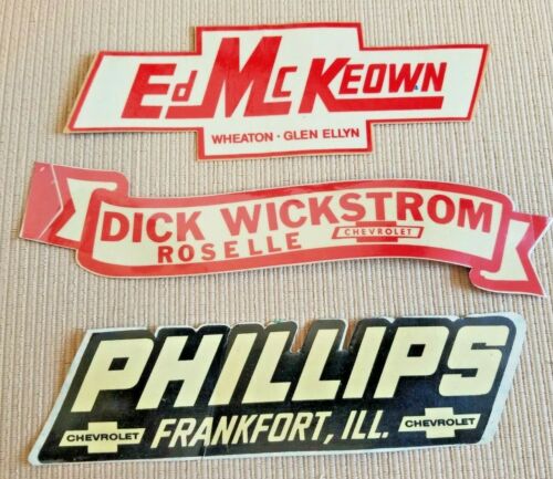 3 Old RARE Stickers Dealer Emblems Chevrolet Illinois Frankfort Roselle Wheaton