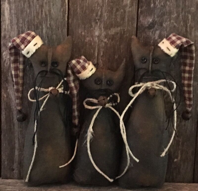 Title (ebay affiliate link): Primitive Trio Christmas Cat Family/Kitty Doll Cat Shelf Sitters