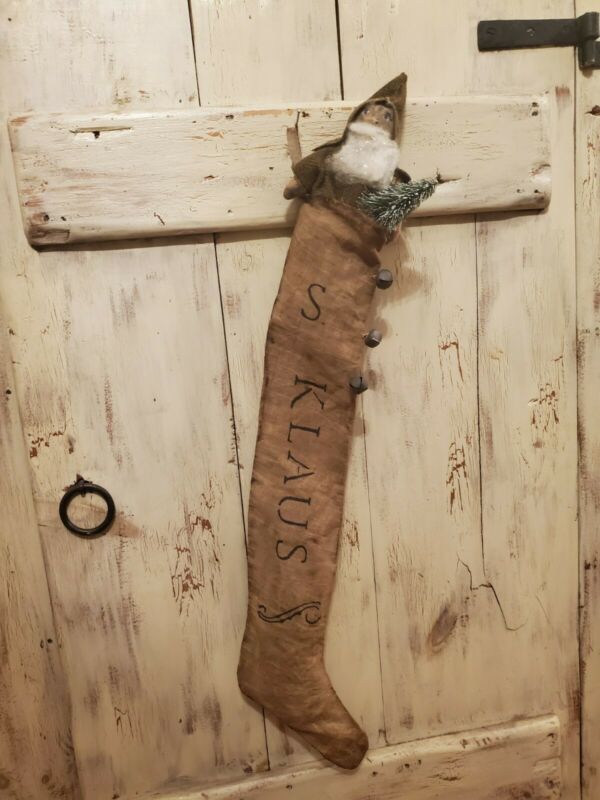 Title (ebay affiliate link): Primitive Christmas Stocking~Santa Claus~Winter
