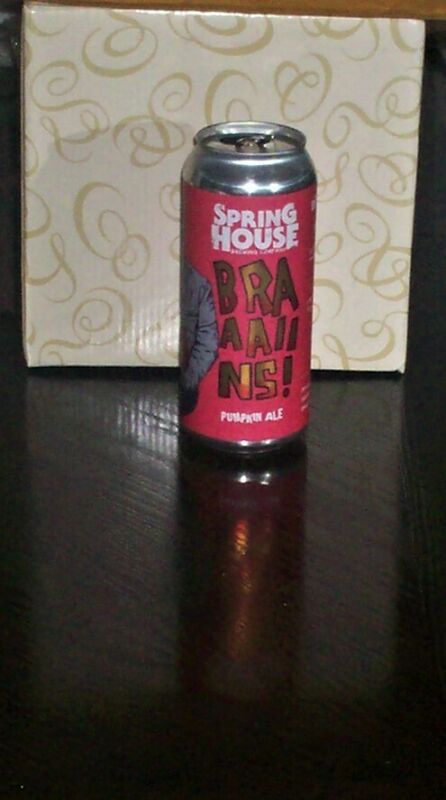 Title (ebay affiliate link): Springhouse Brew ''Braaaiins!'' Pumpkin Ale 2020 16 oz. empty beer can