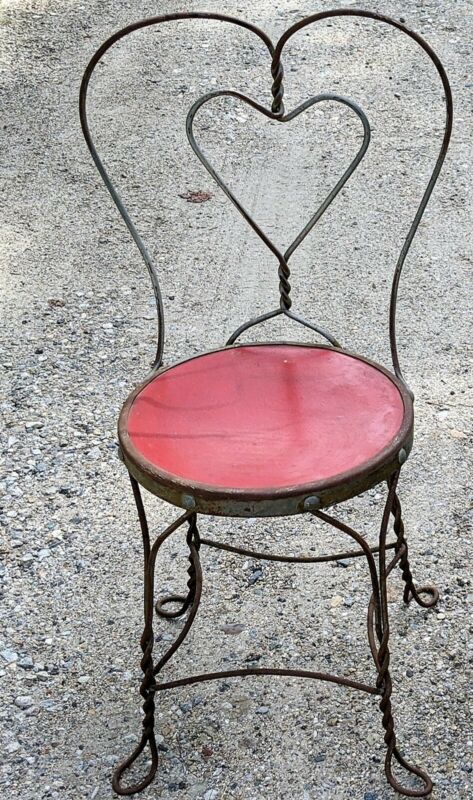 Title (ebay affiliate link): Vintage Ice Cream Parlor Chair heart-shaped back & red wooden seat