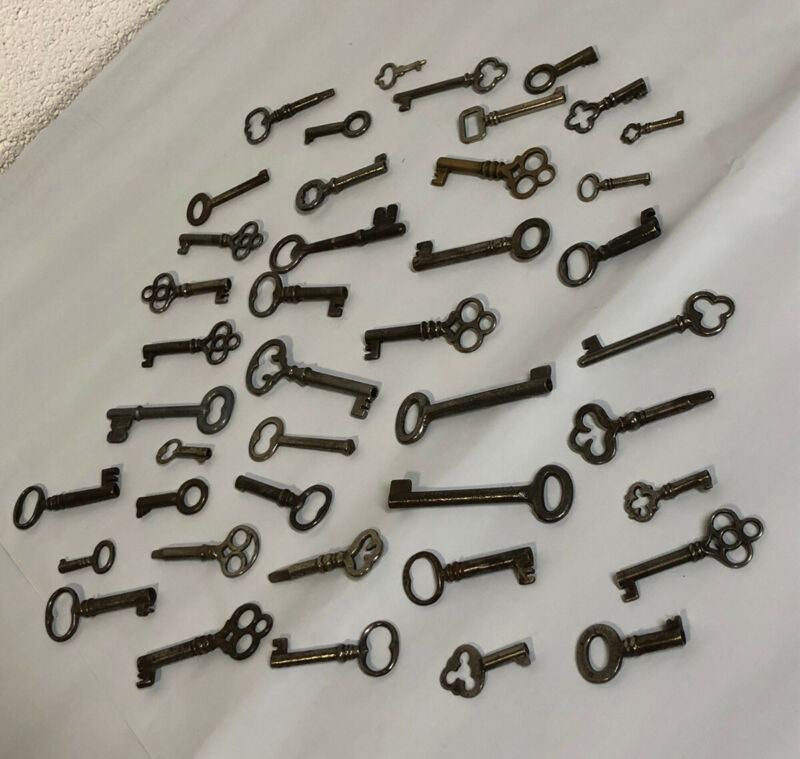 Lot x42 SMALL ANTIQUE SKELETON KEYS FURNITURE BARREL CABINET LOCK Clock Sets