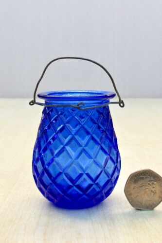 ANTIQUE c1900s VICTORIAN COBALT BLUE GLASS FAIRY LAMP LIGHT CHRISTMAS TREE DECS