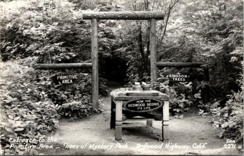 RPPC ~ PRIMITIVE AREA ~ TREES OF MYSTERY PARK ~ REDWOOD HIGHWAY CALIFORNIA A90